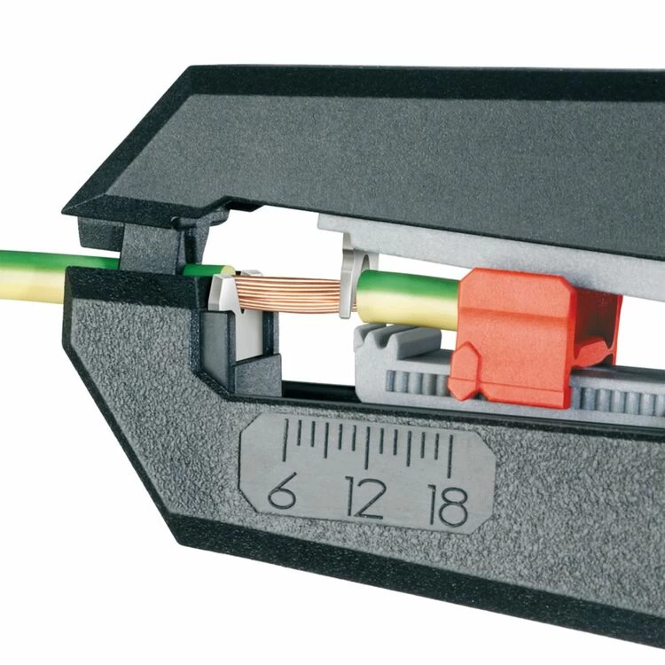 Professional Quality manufactured in fibreglass reinforced plastic making this tool both light and strong, it is well suited for repetitive tasks where ergonomic design and lightweight are desirable. The tool adjusts to suit the cross section automatically when used with standard insulation cables, preventing damage to the conductor. Repetitive tasks are further eased by an adjustable depth stop allowing consistent stripping from 6 to 18mm. Display packed.