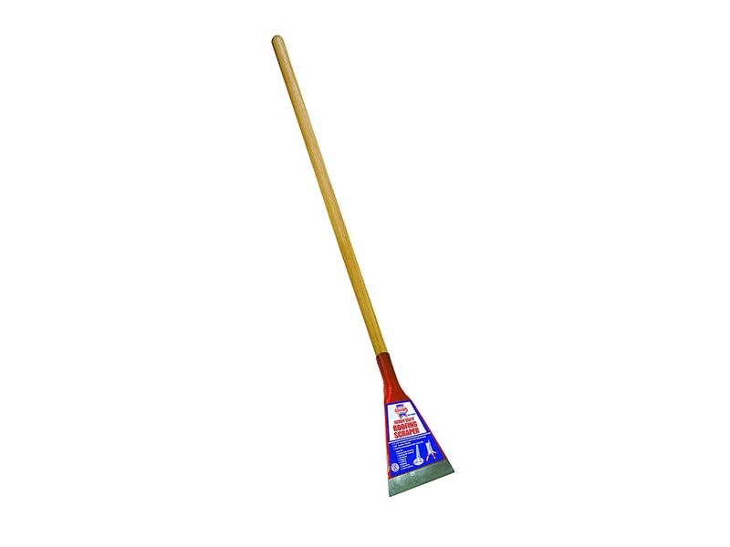 The Faithfull FAIHDRS heavy-duty roofing scraper with a 175mm (7 inch) wide one-piece solid steel forged blade and a 1.4m (54 inch) wooden handle. The scraper can be re-sharpened with a hand file.