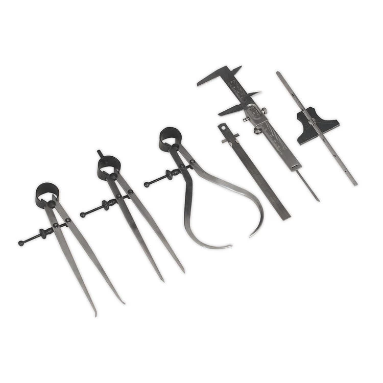 | Contents | Vernier Calipers, Depth/Angle Gauge, External Calipers, Dividers, Internal Calipers, Pocket Rule with Clip |