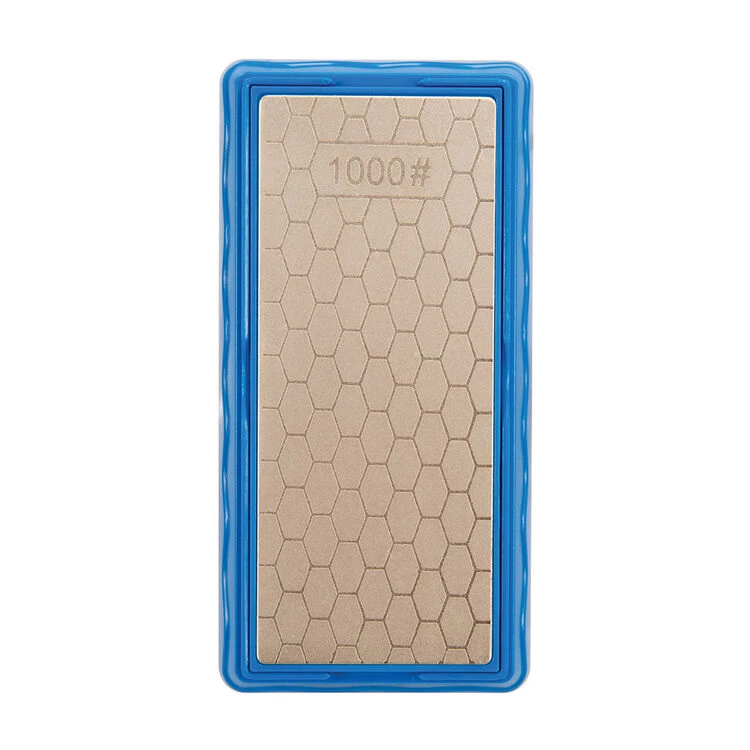 Double-sided whetstone with diamond sharpening plate. High quality plastic base with non-slip feet. Sharpens most kinds of knives, tools and blades. Easy to transport and store. Coarse side 400 and fine side 1000 grit. Size 90 x 180 x 34mm.